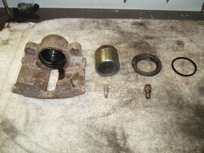 Nun hab ich mir neue Dichtsätze besorgt, die Sättel gestrahlt (leider 4 Tage "nackt" in der Halle liegen lassen = leichter Rostansatz) und komplett zerlegt.