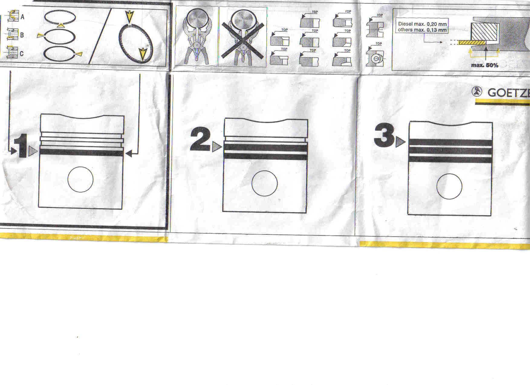 dadurch das der 2te vom 1sten um 180° versetzt ist ist auch die einbaulage von den Ölabstreifring bestimmt und zwar 20-50mm nach Links bzw. nach rechts.