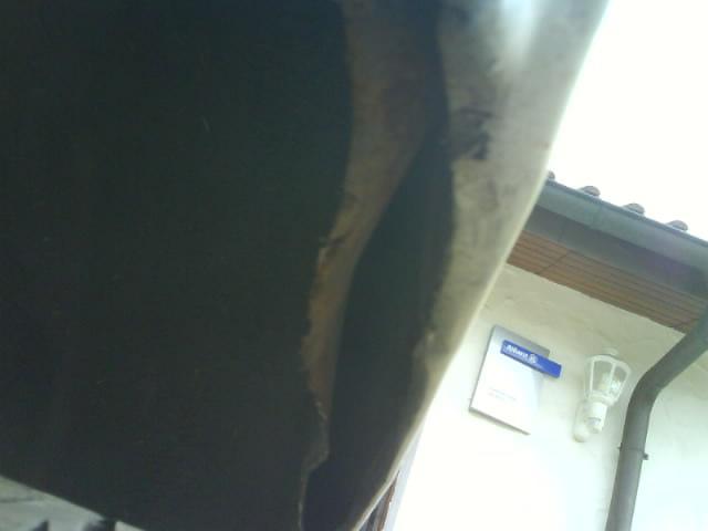 hinten am abschlussblech hab ich das loch noch etwas größer aufgeflext naja dahinter war auch rost aber net so wild kommen halt neue bleche rein.