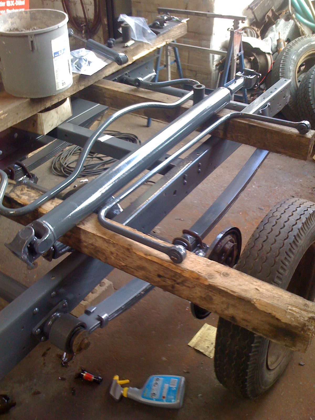 Derweilen ist es in der Lackierkabine schon wieder eng geworden. Die Vorderachse war nicht richtig sauber und muss leider noch mal gespritzt werden. :stance: