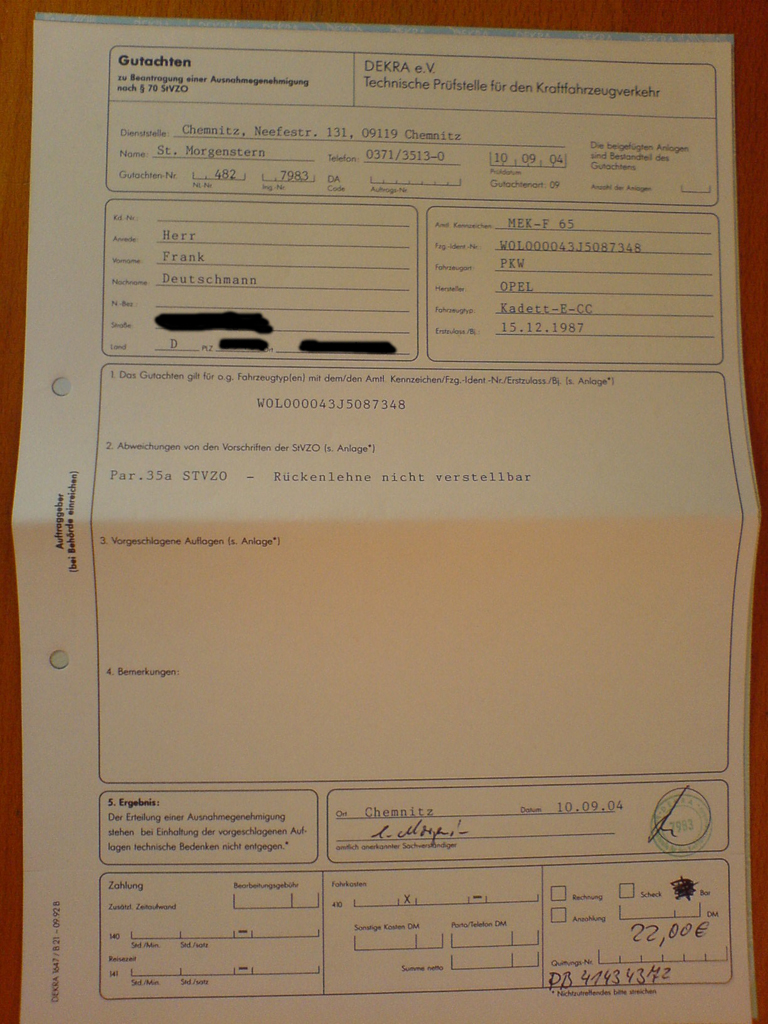 Also ich habe mir hier nicht alles durchgelesen, aber zum Thema Vollschalensitze eintragen habe ich es damals so gemacht.