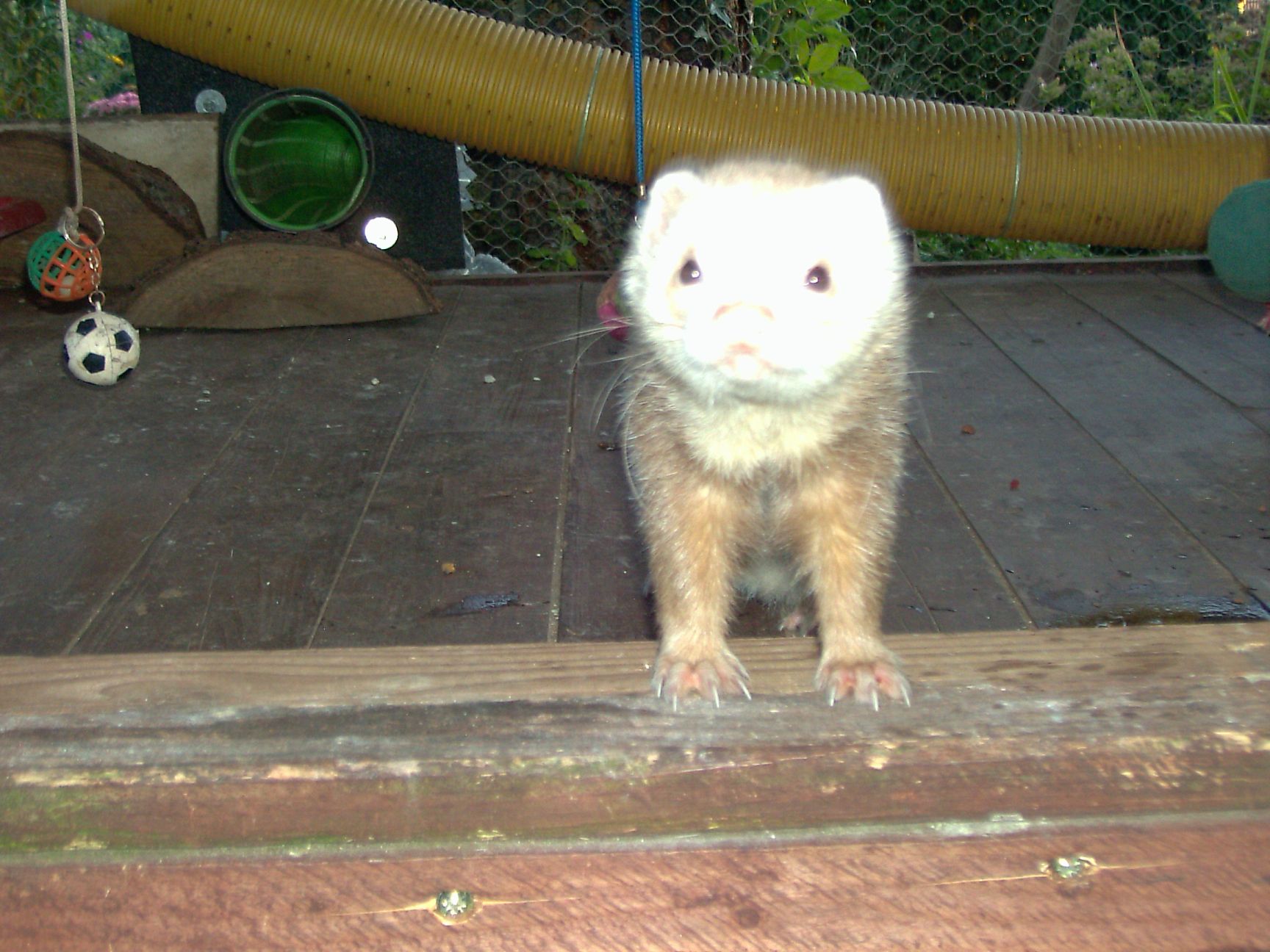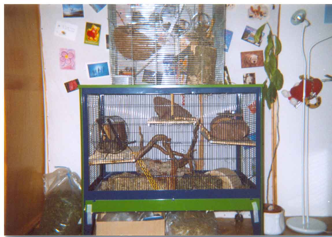 Außerdem haben sie ein großes Gehege wo sie sich richtig auslassen können und manchmal dürfen sie auch unseren Garten unsicher machen.Achso,fehlt janoch das Foto vom Dicken(heißt Nono):