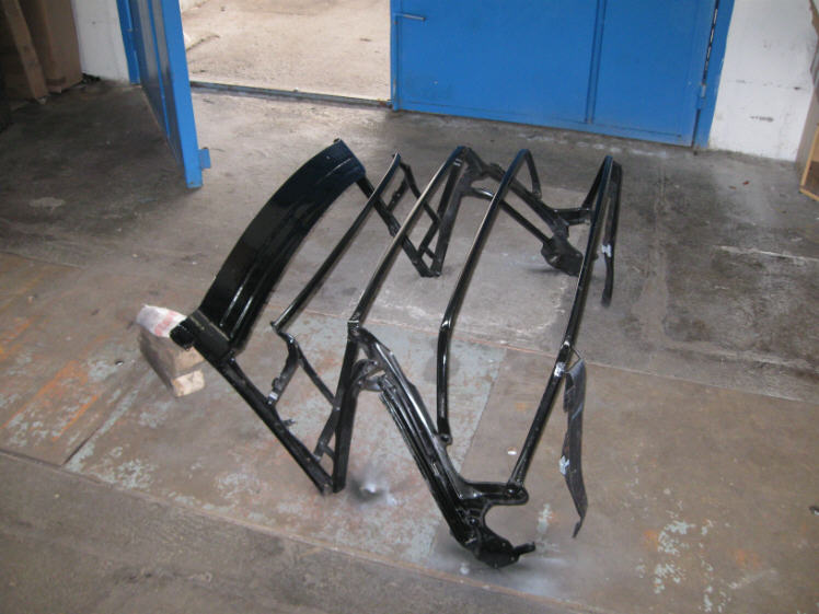 Jetzt muß an dem Gestänge noch etwas Rost entfernt werden und wenn das neue Verdeck und der neue Himmel da ist, kann ich es neu beziehen.