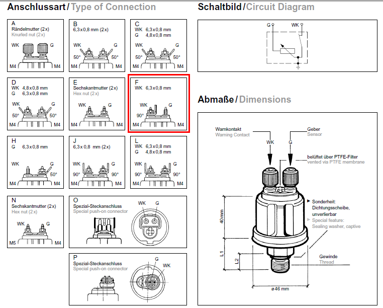 Öldruck: Schalter am Motor austauschen gegen entweder "nur Geber" oder "Geber mit Schaltkontakt".