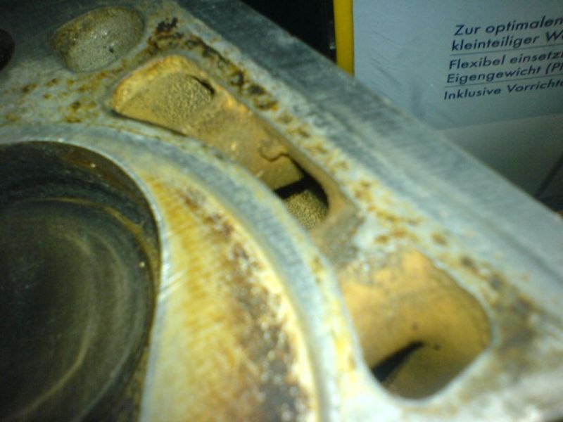 Ihm ist noch ein Stehbolzen abgerissen den ich rausbohren bzw schweissen muss dabei ist mir aufgefallen dass die Wasserkanäle schon extrem angeschliffen sind...