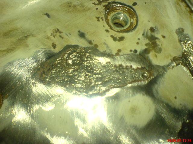 Bodenwanne, Dreieckslenker/ Querlenkeraufnahme auf der Fahrerseite siehe Foto´s. Es sieht aus, als wenn sich der Rost schon durch alle Schichten gefressen hat. Die großen Rostnarben sind vom braunen Rost befreit und übrig ist was zu sehen ist. In der Narbe ist es noch sehr stabil und nicht mit dem Schraubendreher zu entfernen.