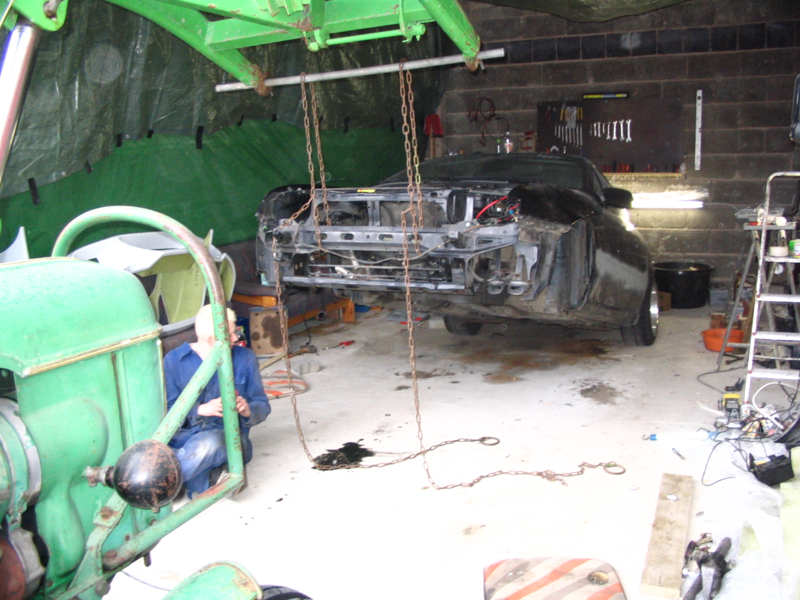#116 Ich schraub immer bei nem Kumpel!Der hat ne Hütte (fester Boden^^) mit Hebebühne, Kompressor, passen ca. 3 Autos rein.