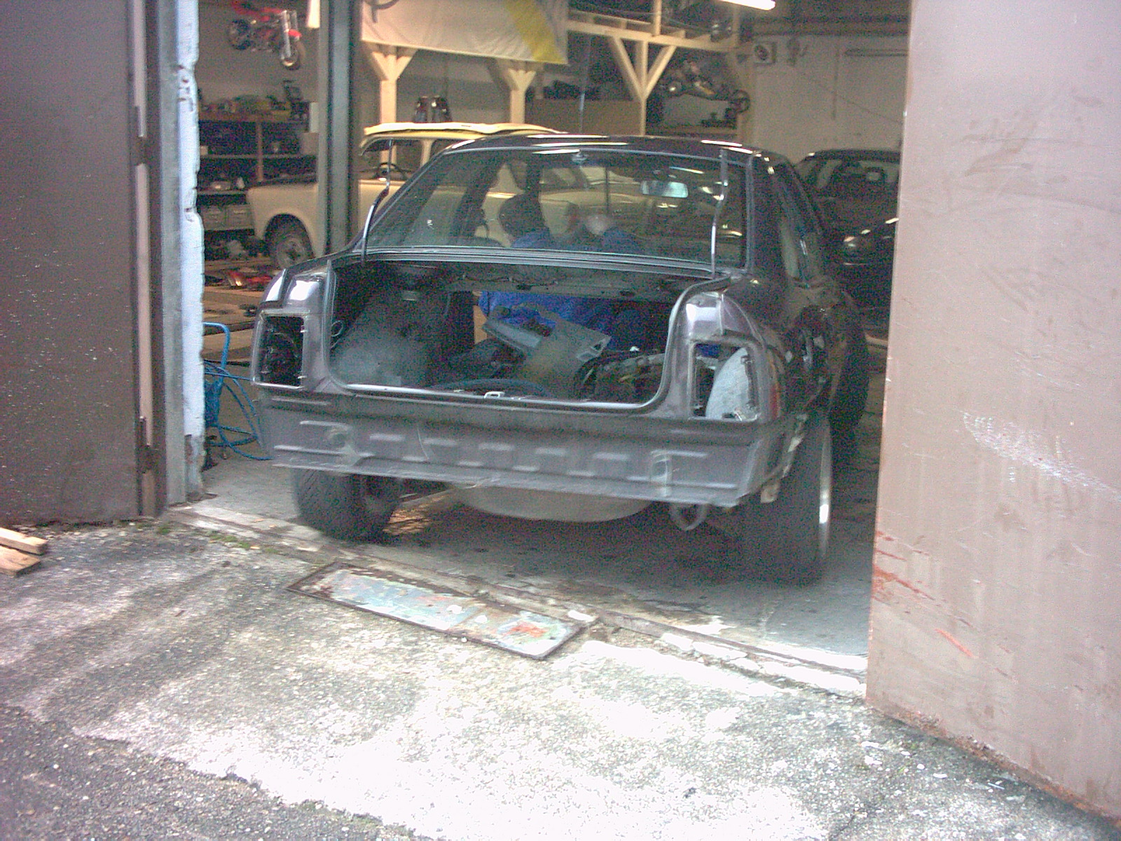 Das Ersatzteillager besteht aus 2 alten Riesengroßen Sauställe, die sind ich weiß nicht jeweils ca. 50m lang und ca. 6m breit und da liegen nur Opelteile rum, hauptsächlich Kadett E Teile, da er damit Rallye fährt. Draußen im Freien stehen dann au noch 2 GSI usw.