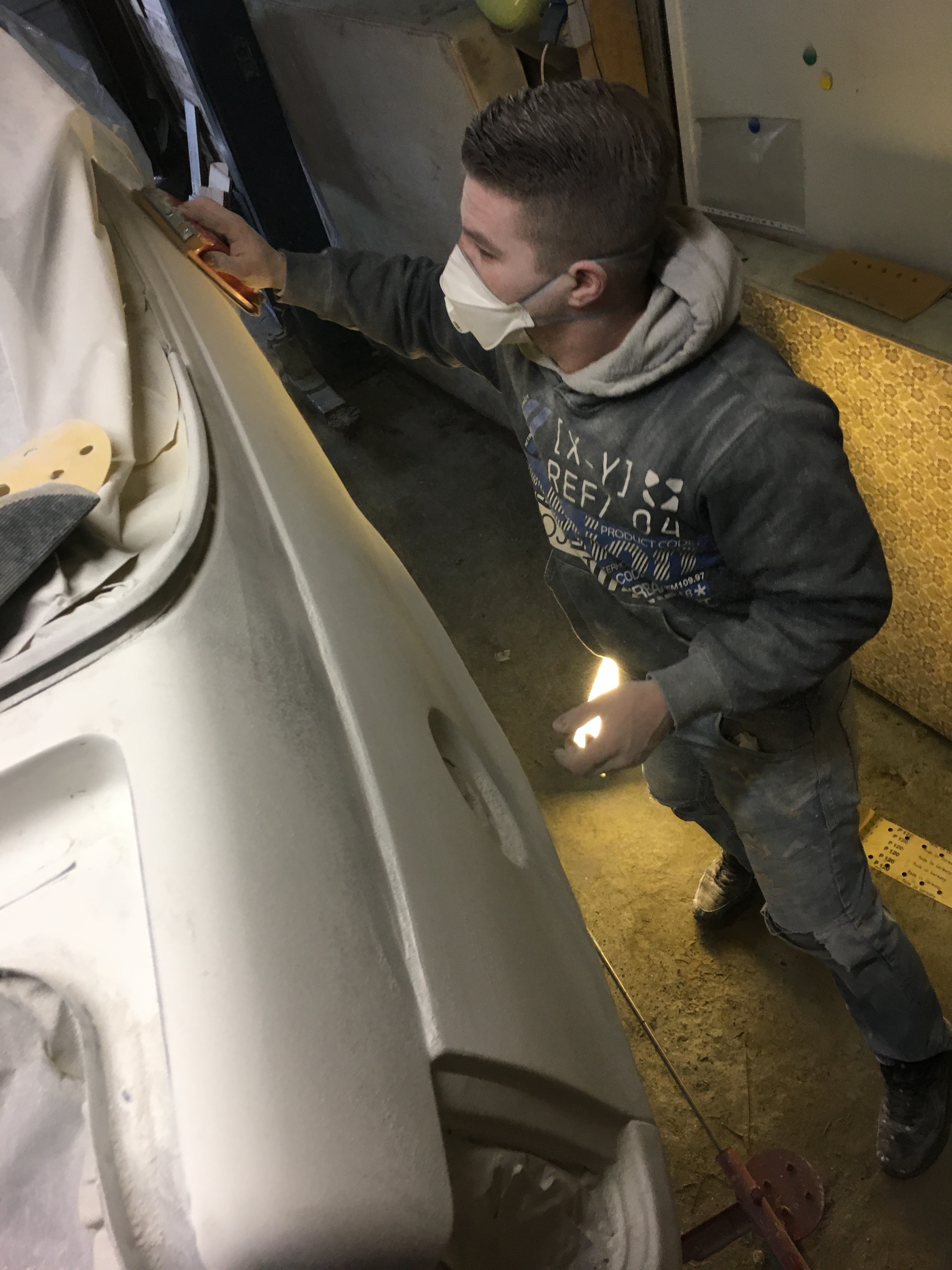 Nebenbei haben wir noch 2-3 stellen gespachtelt damit dann Nacher der Füller drauf kann , somit die letzte Schicht vor der Farbe