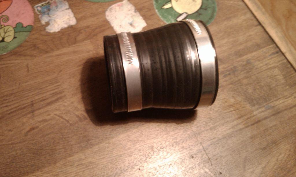 Das Reduzierstück und der Ansaugschlauch werden mit einem Stück Rohr (mit 60mm Außendurchmesser) verbunden - das war mal ein Teil einer alten Ansaugglocke, das Stück wo der Ansaugschlauch draufgesteckt wird.