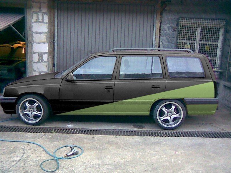 Ist ein Caravan Bj 91.Ex 1,4 Liter.Da gerade ein Abfrack Astra GSI 16V da stand,wurde dem Astra der Motor,Bremsanlage,Lenkung und die Dämpfer vorne entrissen,und in den Kadett Verpflanzt.Eine Lexmaul Gruppe A aus einem Astra Caravan ist auch unter den Kadett gewandert.