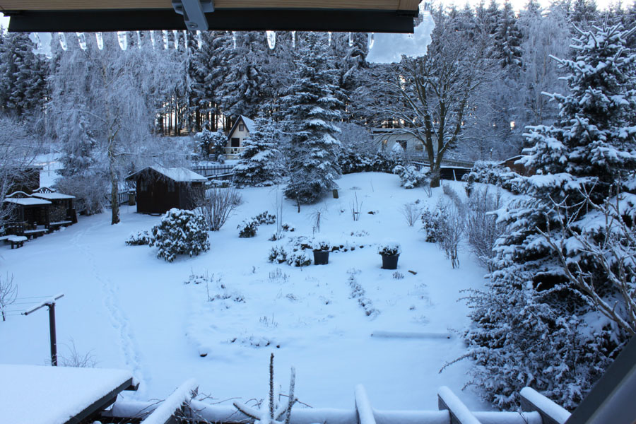 So schauts bei uns grade aus, wobei es jetzt im Moment wieder anfängt zu schneien. Temperaturen um die -10° und tiefer. Alles quasi Schock-Gefroren.