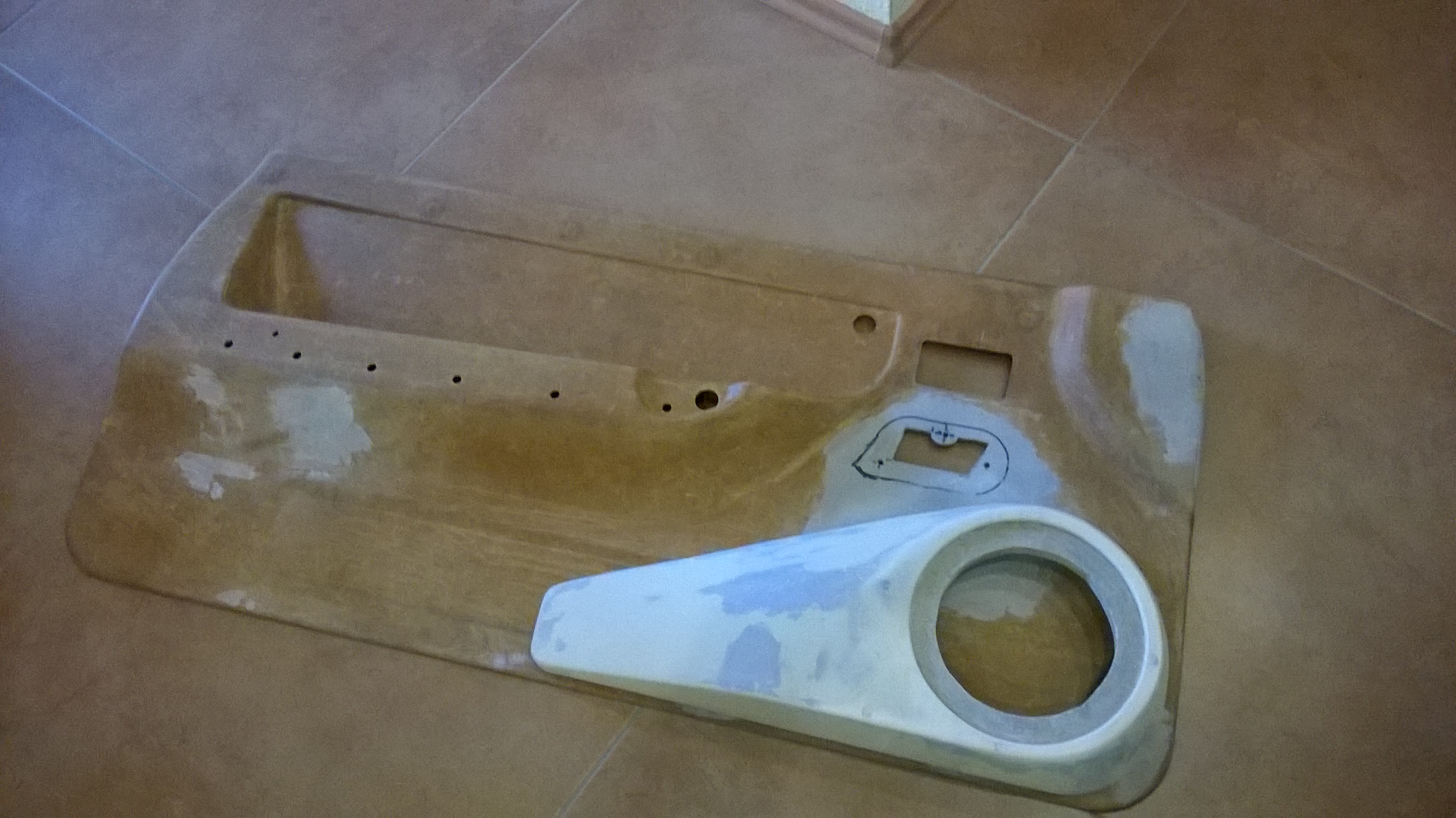 Zwischenzeitlich werde ich mich um die Türverkleidungen kümmern, das ich die auch bei der Fertigstellung einbauen kann. Aber erstmal etwas bearbeiten. Das untere Fach bleibt aber weg an der Verkleidung.