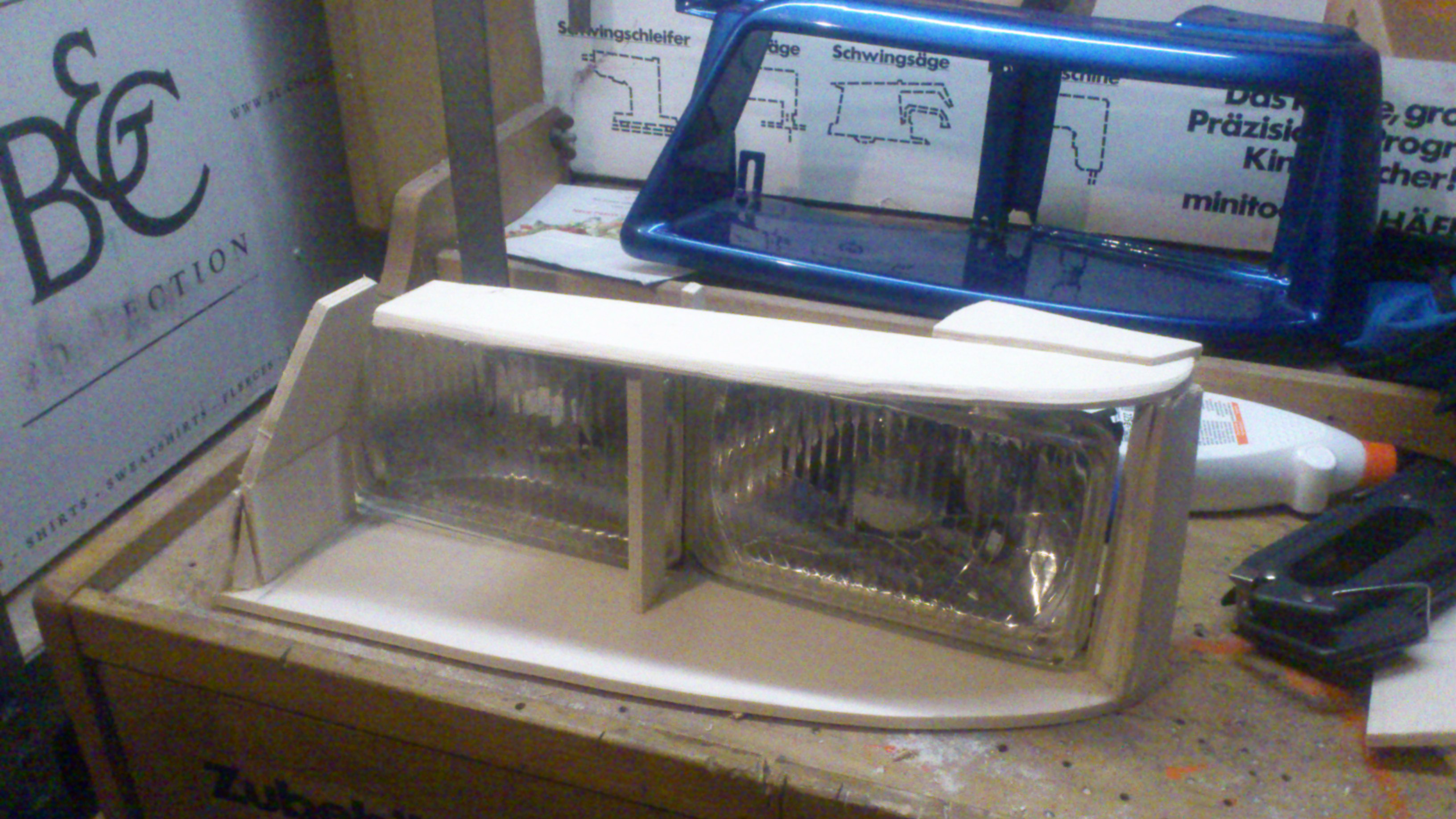 Jetzt habe ich mich aber mal im Hobbyraum im Keller etwas ausgetobt und probiere, die Hirsch-Car-Scheinwerfer nachzubauen. Ich habe nämlich keine Lust mehr, immer das poppelige Plastik zu flicken.