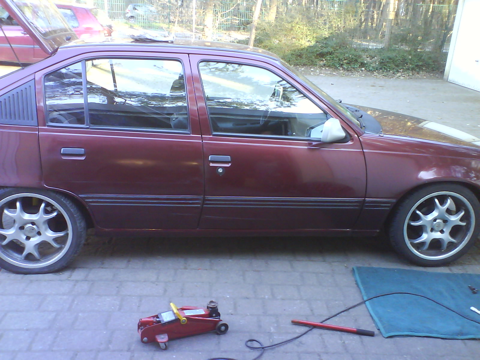 und da die kiste ja eh langsam mehr schwarz als weinrot is hab ick mir überlegt ick mach die seiten auch schwarz...allerdings nur in höhe der front und heckstoßstange...so das ick quasi einmal unten ringsrum dat auto in schwarz hab...sieht bestimmt läcka aus