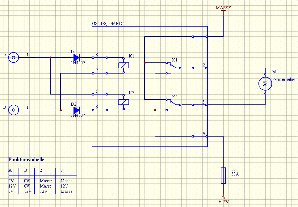 Ich bin gerade dabei in den D elek. Fensterheber einzubauen und bekomm die Schaltung nicht auf Zeichenbrett.