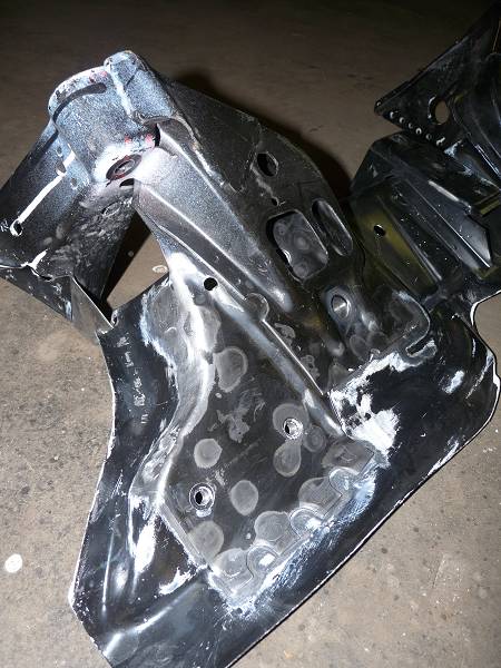 Ersatzteilmäßig ist der Längsträger - soweit ich das in Erinnerung habe - in Verbindung mit dem kompletten vorderen Radhaus zu haben. Das ist dann ein großes Teil, dass vom Lampentopf bis zur A-Säule reicht und dann auch die Kotflügelbefestigungskante, Batterieblech und Federbeindom beinhaltet.