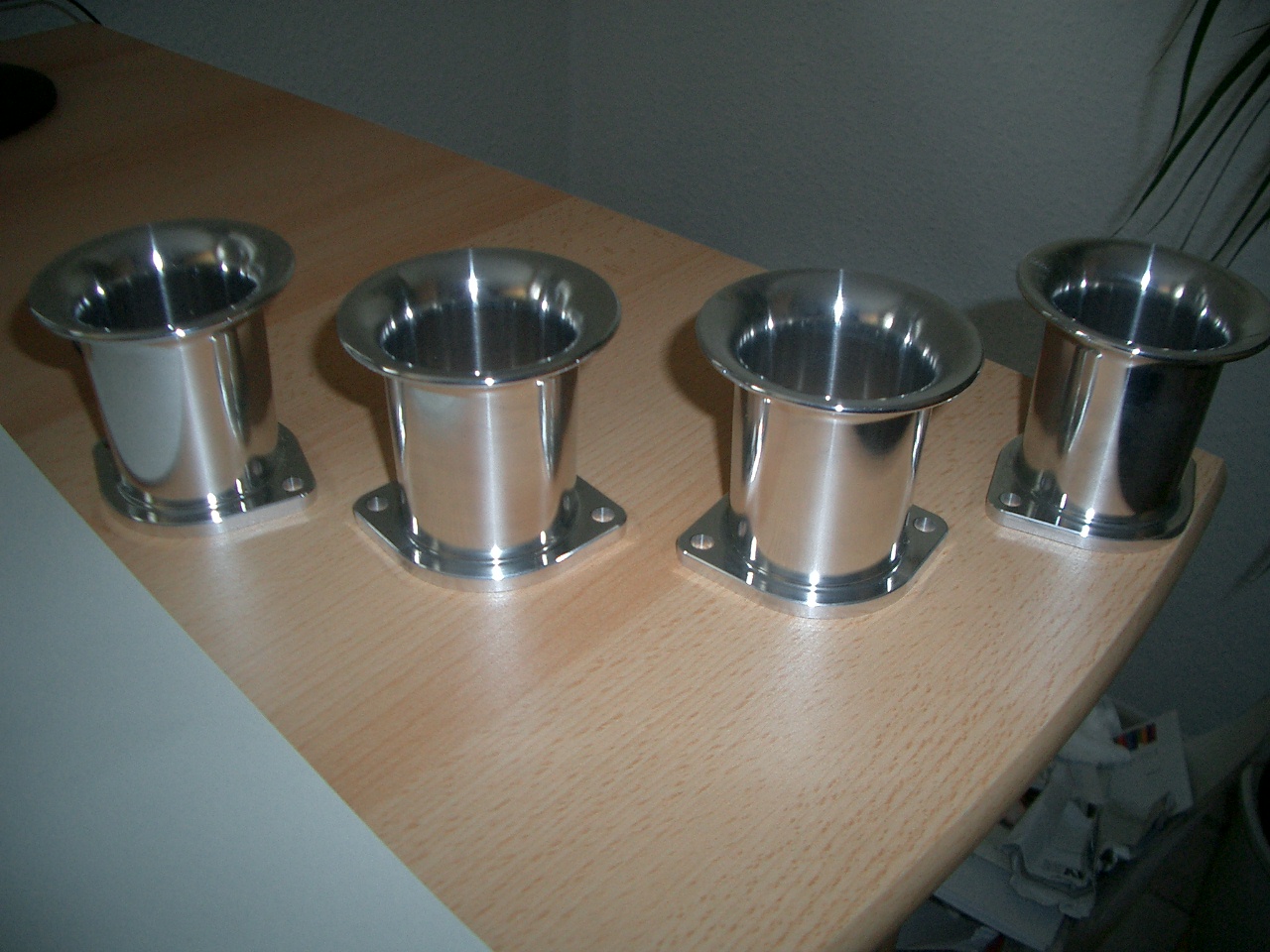 Ein goldenes L ist auch dabei. Der Kühler ist grade in der Umbauphase, nicht das ihr denkt, der faule Hund macht nix mehr. Musste mich leider etwas zurück nehmen, da ich im Zeitplan für mein Haus ein wenig nach hinke. Ach ja, die alten polierten Trichter stehen zum Verkauf
