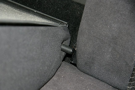 In der Mitte (zwischen den beiden Rückenlehnen) geht ein Blech hoch, in dem ein weisses Plastik ist, welches die Haltepinne der Rückenlehnen umgibt und dadrüber ist dann ein schwarzes Blech, was ebenfalls wieder durch eine Schraube fixiert ist.