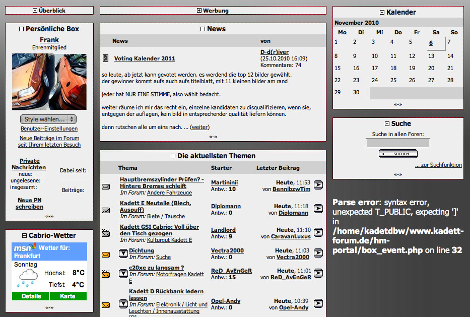 So hat das Forum bei mir ja noch nie ausgesehen.Das ist die Portalseite des Forums in der ganz normalen Useransicht.