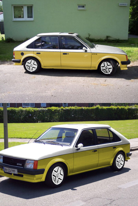 Da wir beide nicht so die Könner in Sachen Bildbearbeitung sind möchte ich die Faker hier im Board mal bitten meinen Kadett wie den Manta von Bertie anzupinseln.