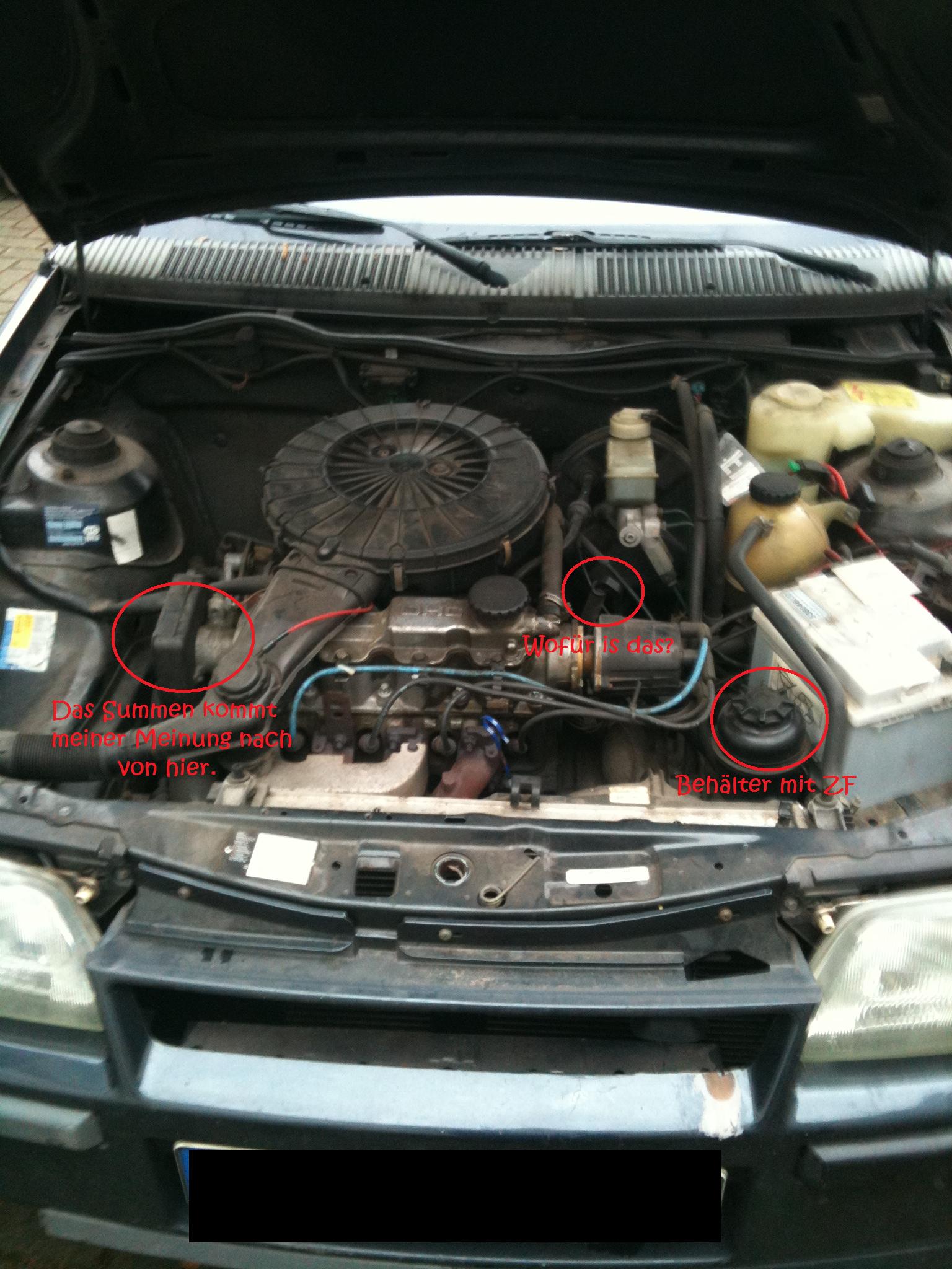Hallo, also der Behälter, der mit ZF gekennzeichnet ist, ist für das Öl der Servolenkung.
