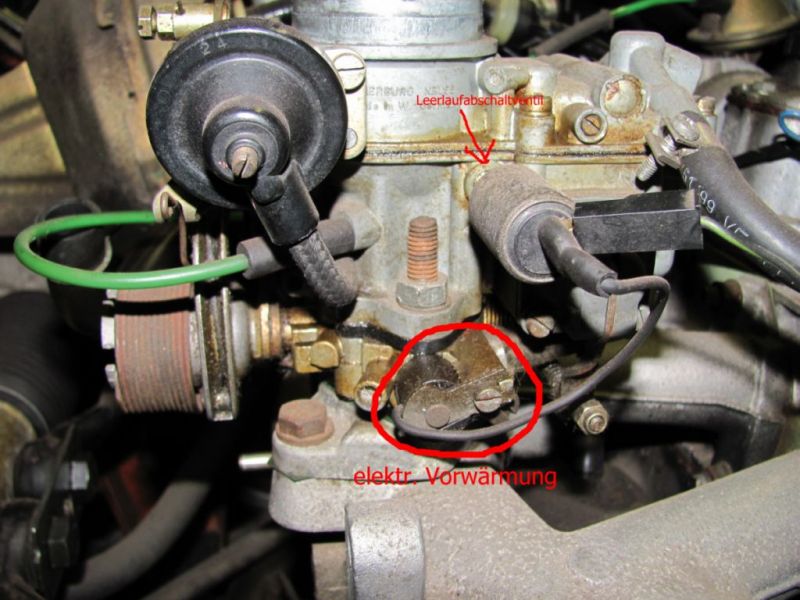 Auf der anderen Seite sieht im eingekreisten Bereich die elektrische Vorwärmung. Diese läuft mit über das Leerlaufabschaltventil.