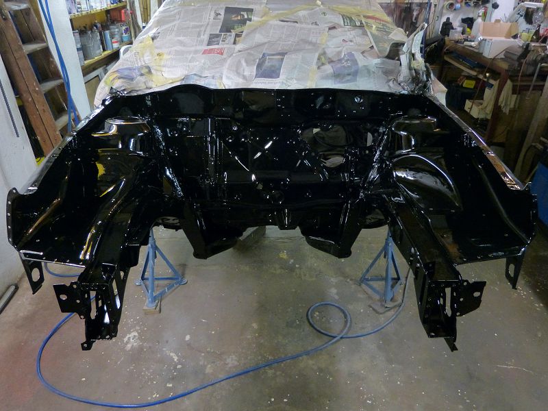 Krass wieviel Licht man dabei braucht, ich habe in der Werkstatt normalerweise 6 Neonröhren brennen, zum Lackieren drei weitere ringsum verteilt und trotzdem musste ich dann noch mit Handlampe die Ritzen und Ecken beleuchten, weil man erst dann sah, dass dort die Grundierung noch durchschimmerte. Das Schwarz saugt die Lichtteilchen auch noch extrem ein, habe ich das Gefühl.. lässt sich kaum fotografieren - naja man kann erahnen.. es glänzt stellenweise ganz ordentlich.. o)
