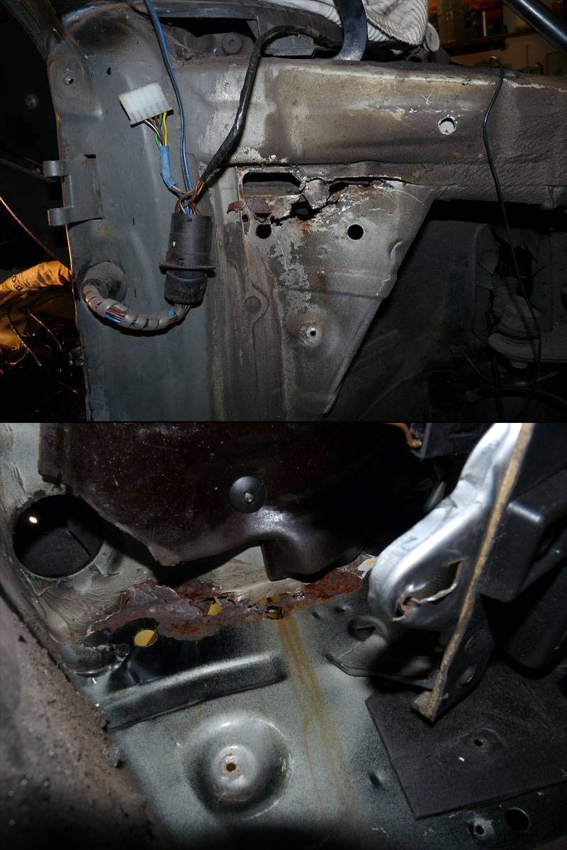 Der Lochfraß geht von unter der A-Säule bis weiter vorne unter das Versteifungs-