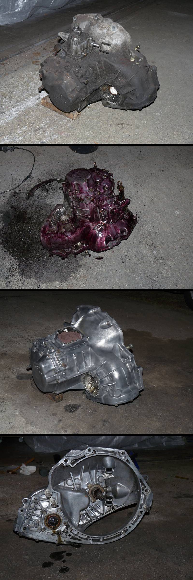 Dichtringe für Achswellen im Getriebe F20 ersetzenGeschruppt habe ich das Getriebe erst mit Drahtbürsten, dann Bohrmaschine und dann etliche Male