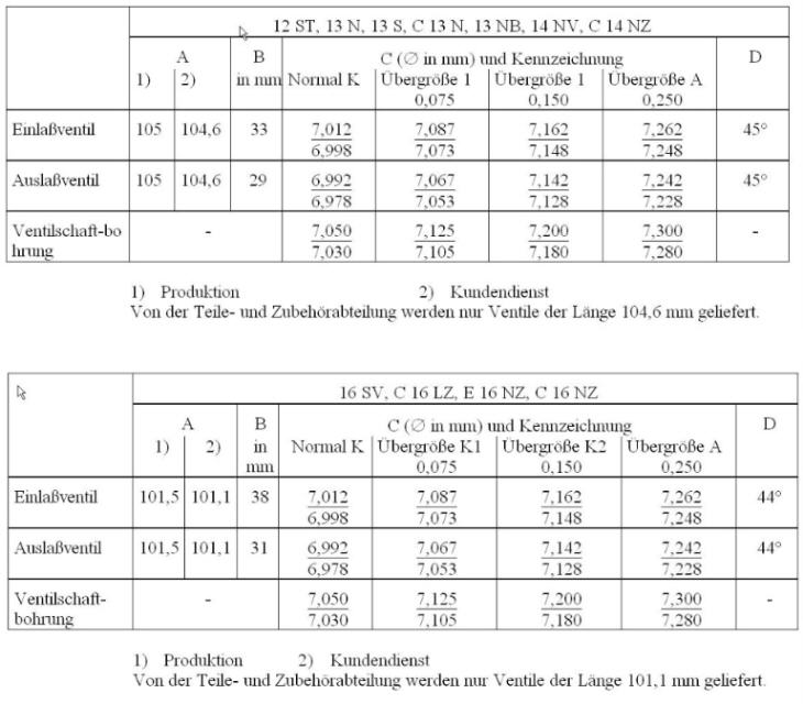 Das stimmt nicht, 1,3-1,4er Ventile sind genau die gleichen, 1,6er Ventile sind 3,5mm kürzer.