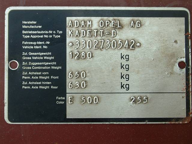 Du hast auf Deinem Schloßträger zwei kleine Blechschilder, eines davon sieht so wie auf dem Bild aus. Anhand der Farbnummer kann Dir jeder Lacker weiterhelfen. Ferner ist da noch ein mitlackiertes Blech, das die komplette Ausstattung Deines Autos verrät (mehr Zahle -> mehr Ausstattung). Da kannst Du dann auch erkennen, ob evtl. mal was umgebaut worden ist. Das kannst Du hier auch von unseren Datenprofis aufschlüsseln lassen: