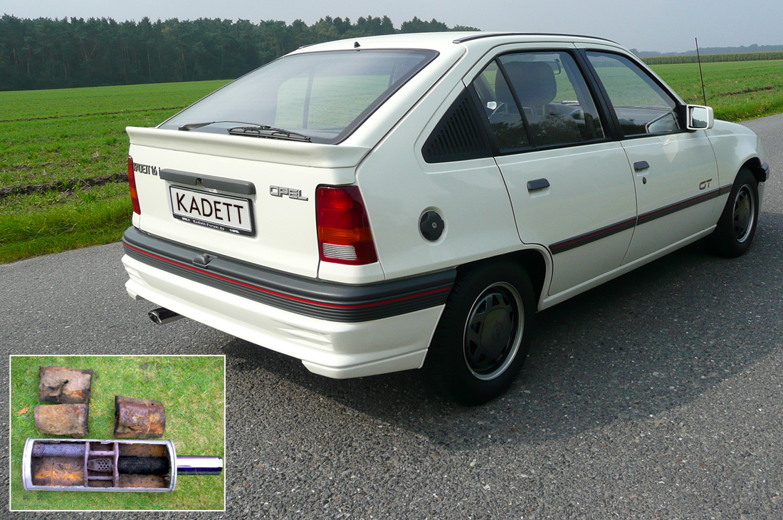 1x ist häufig ein ganz normaler Endschalldämpfer verbaut so dass das Endrohr nach unten zeigt (wie halt bei jedem normalen Kadett E auch)