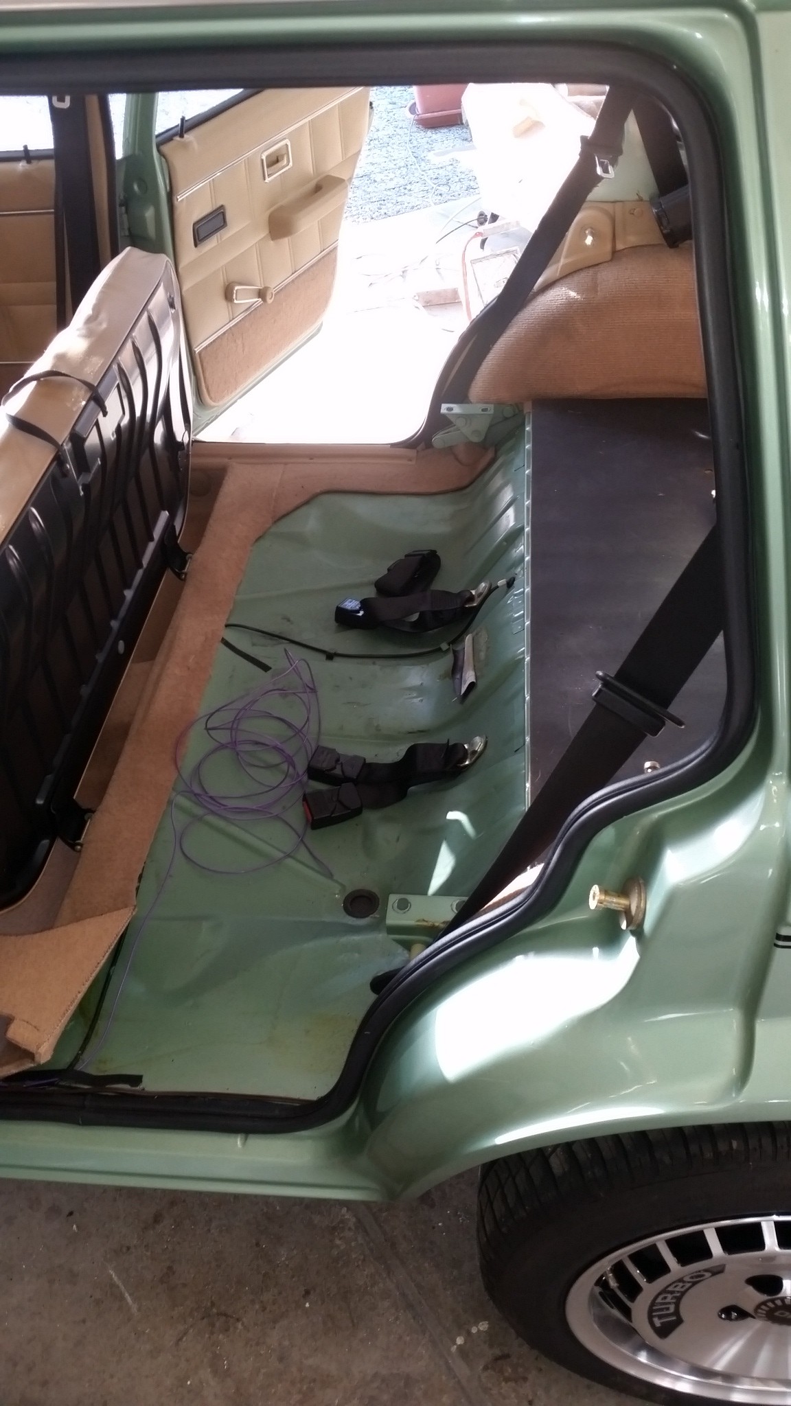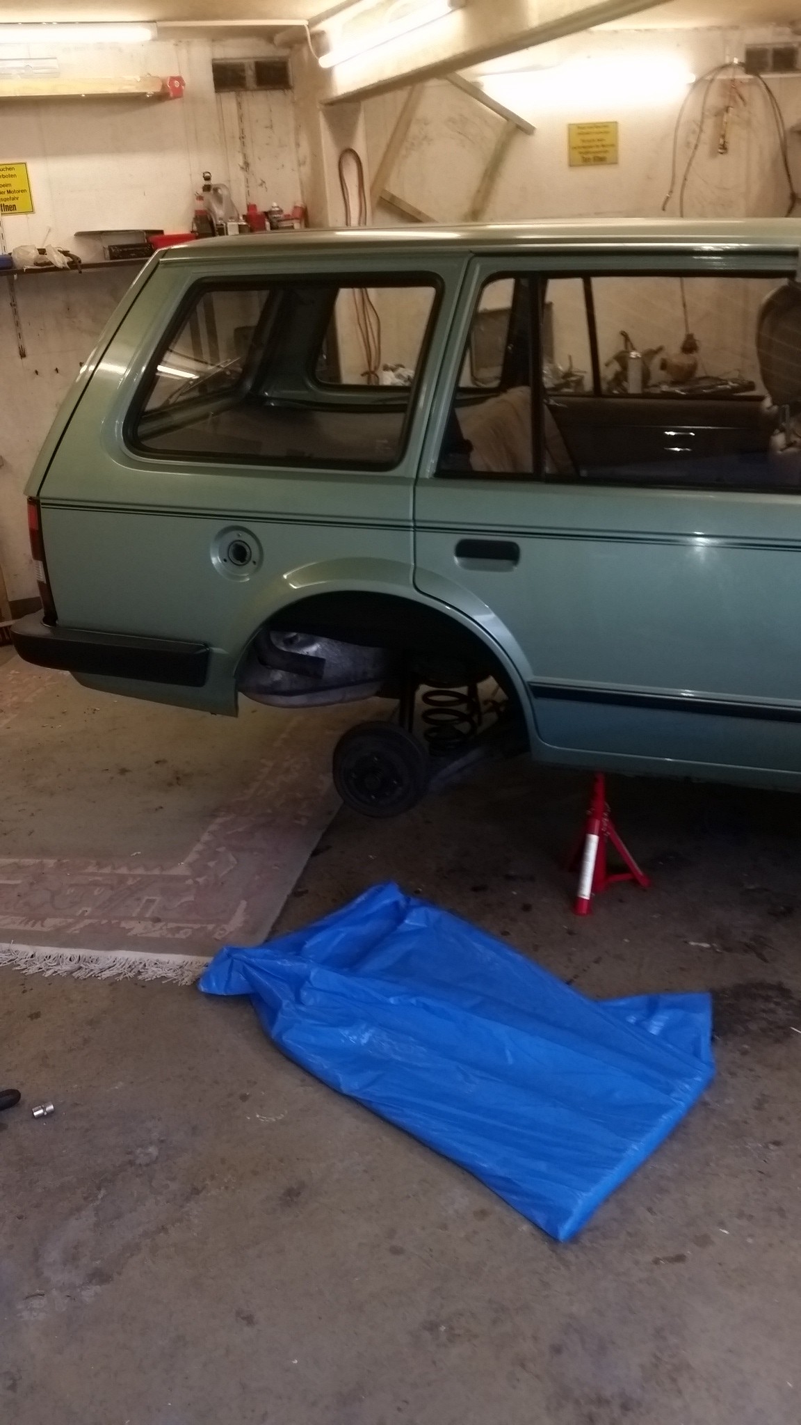 Mittelkonsole ist noch draußen da ich das Schaltgestänge noch einstellen muss.Dann habe ich die Büchse mal hinten aufgebockt um den Tank zu tauschen