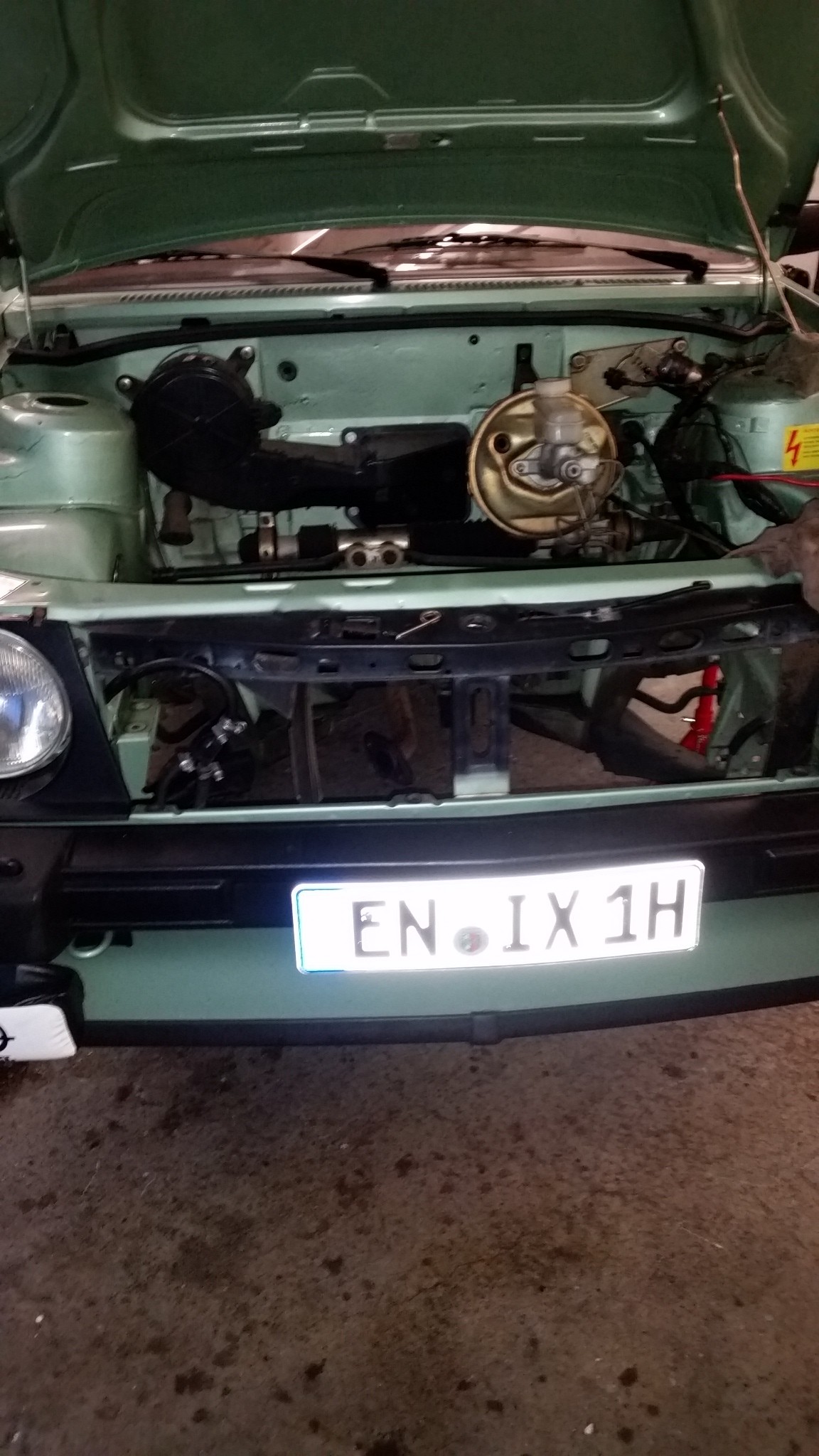 Jetzt wird der Motorraum erst mal sauber gemacht. Und dann wird der 1,8 da einziehen