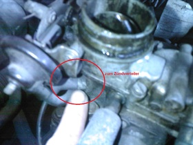 Vielen Dank für die Bilder erstmal! Aber das wirft doch jetzt neue Fragezeichen auf. Die Anschlüsse für den Zündverteiler und diese schwarze Pulldowndose liegen oberhalb der Drosselklappe. Dort kann es doch wohl keinen Unterdruck geben, außer vielleicht bei geschlossenem Choke. Wie muß ich mir das denn vorstellen? Deshalb meinte ich ja, daß noch irgendwie ein Schlauch an den Vergaser gehen muß, der diesen quasi mit Unterdruck "versorgt". Ich hatte beide Anschlüsse so belegt wie es auf den Bildern ist, dann reagiert aber weder die Dose der Zündung, noch die Pulldowndose.