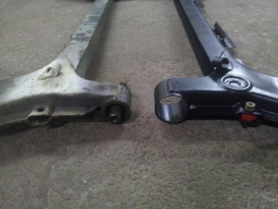 Ich hab jetzt einen 95er A Vectra (einer der Letzten). Der hat jetzt die großen Gummibuchsen und das große Radnabenloch, bis Fahrgestellnummer sind die Kleinen drin und das kleine Radnabenloch. Aber diese seltsamen angeschweißten Rohrhälften am Querträger hat mein Vectra nicht !