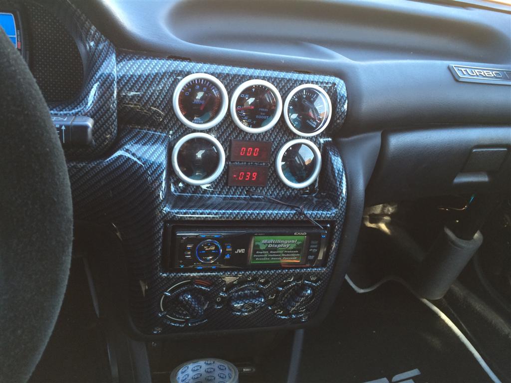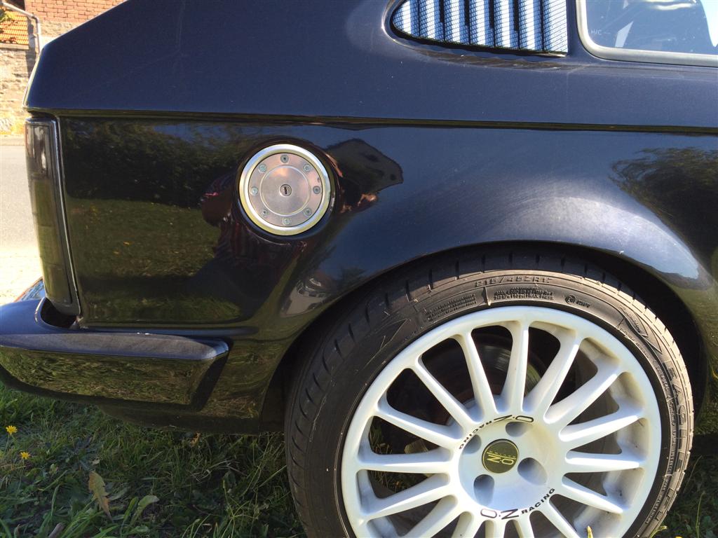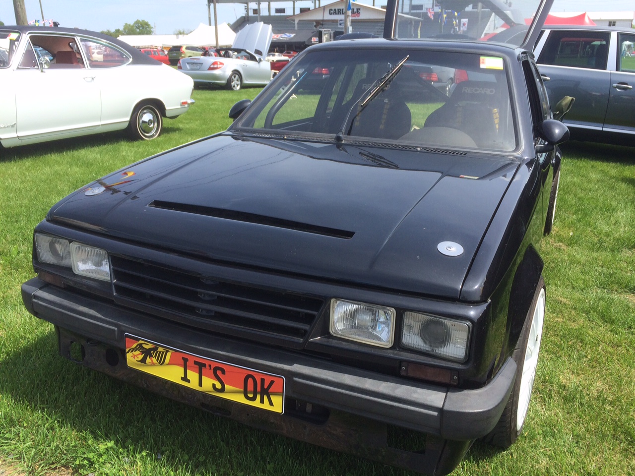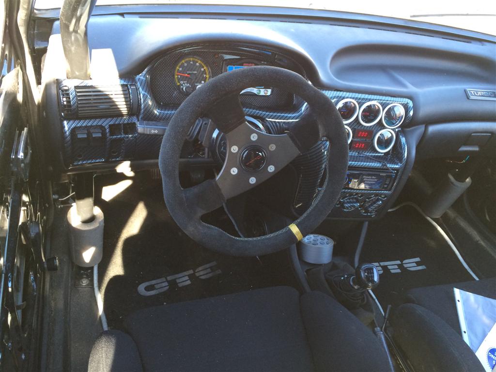 kein Teppich, keine Tuerpappen, kein Himmel, keine Ruecksitze. Armaturenbrett vom Astra, Stahlkaefig, Fahrer- und Beifahrersitze Recaro mit elektrisch gesperrten Schroth 4-Punkt Gurten. Kohlefaser-Simulationen im Innen- und Aussenraum. Bonrath Einarmwischer (zweites Loch verschweisst). Batterie im Kofferraum. Fahrwerk FK862VA / FKOP11HA, Schwarze Rueckleuchten. Scheibenbremsen vo innenbelueftet 288x25mm, hi 270x10 mm. ABS vom Astra. Doppelscheinwerfergrill. Dino-Lenkrad. War alles in Deutschland eingetragen als ich das Auto in 2013 gekauft habe und in die USA importiert habe.