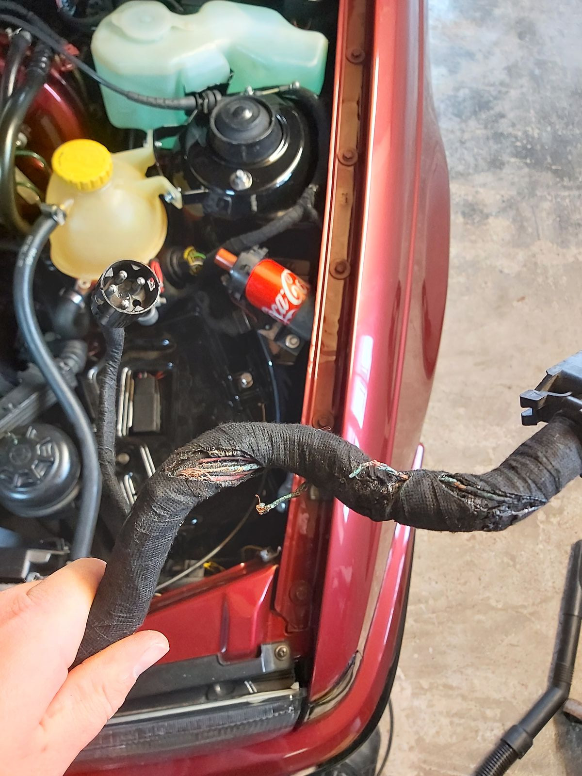 gestern ging es weiter mit dem zerlegen des Motors, dabei musste ich leider feststellen, dass die anfänglich fehlende Masse Leitung von der Lima zum Motor einen schmorschaden am Motorkabelbaum angerichtet hat. Also Wickelung entfernen uns sich mal ein Bild der defekten Kabel gemacht. Glücklicherweise waren es nur 4 Kabel welche sich sehr gut reparieren ließen.