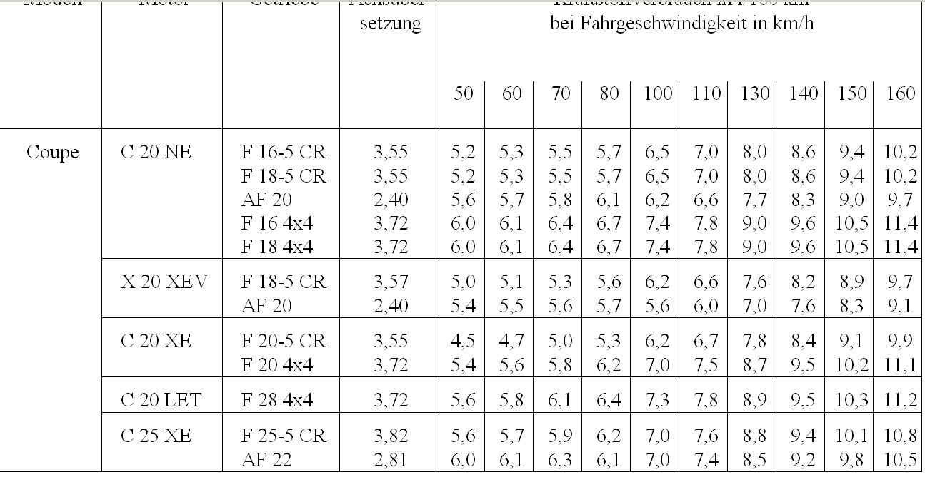 was verbraucht euer c20ne im kadett