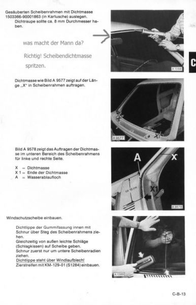 Als Nachtrag: Die ersten D Kadetten wurden tatsächlich mit nichts unter der Windschutzscheibe ausgeliefert. Folge: Ständig Reklamationen. Alle anderen Scheiben, die wurden in der Tat ohne jegliches Dichtmaterial eingesetzt und waren auch dicht.