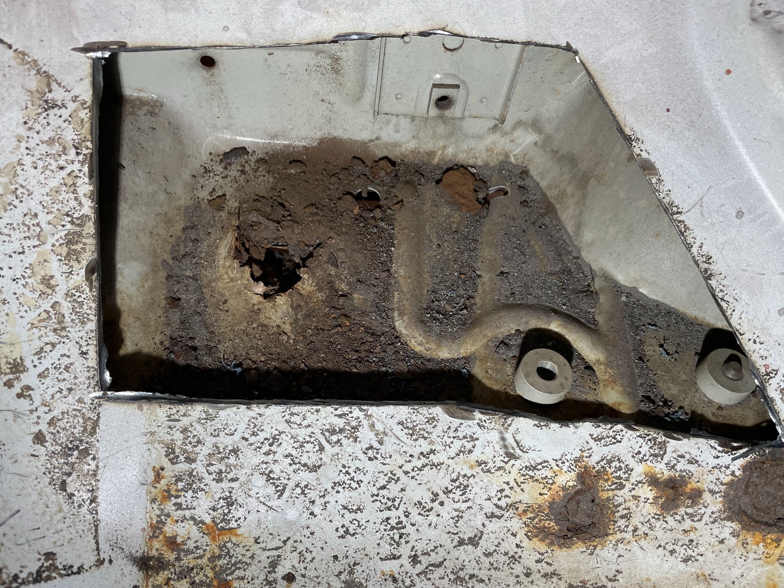 Heute war es sehr ernüchternd..ich hab den Querträgerboden etwas weiter geöffnet und zwischen dem Querträgerboden und der Querlenkerstütze ist nur Rost.