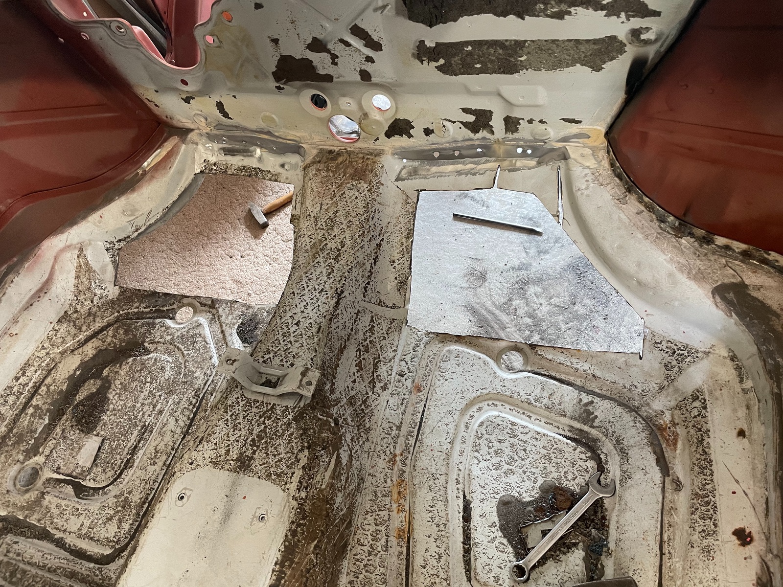 Dann gings los mit dem Ausbohren des Querträgerbodens. Blöde Arbeit sag ich euch..hat fast 3 Stunden gedauert..
