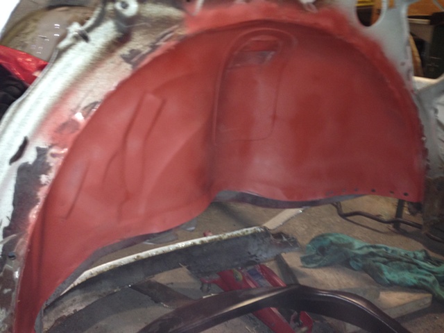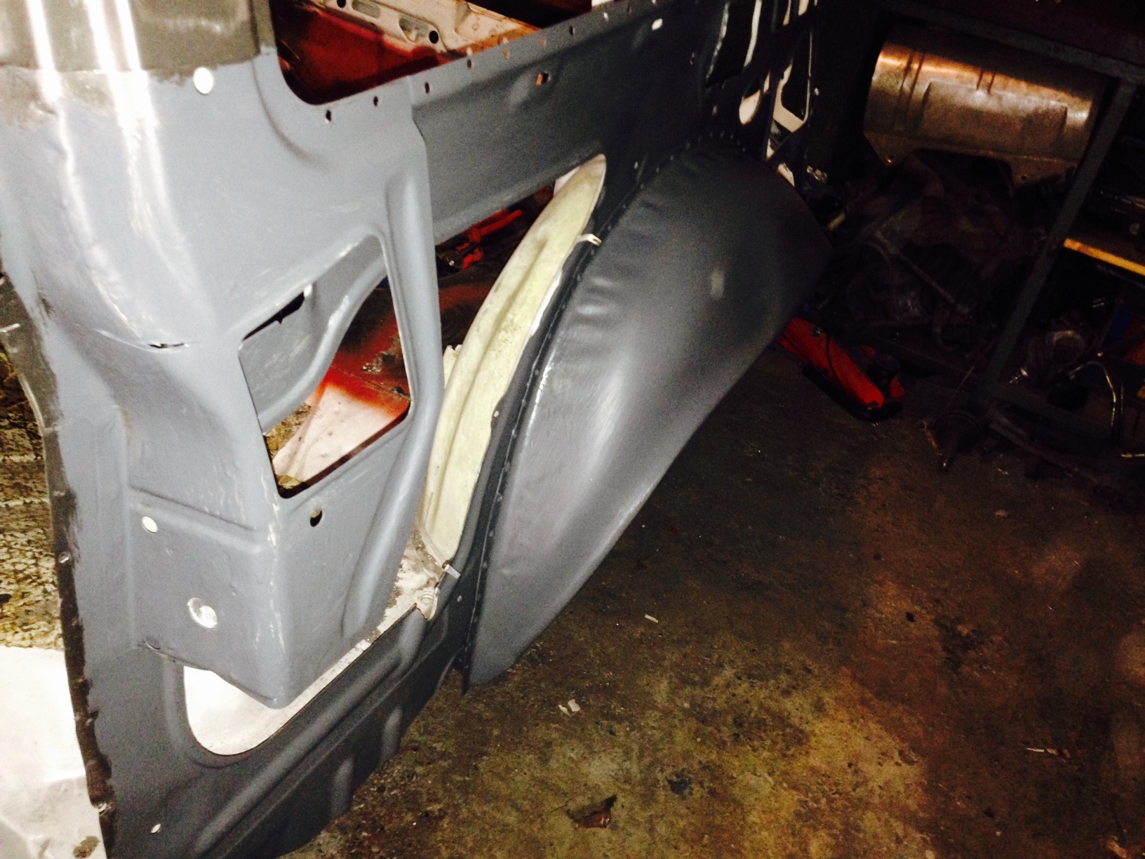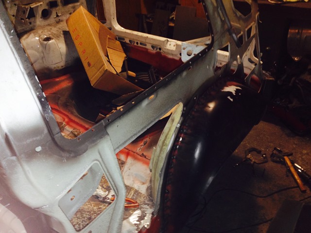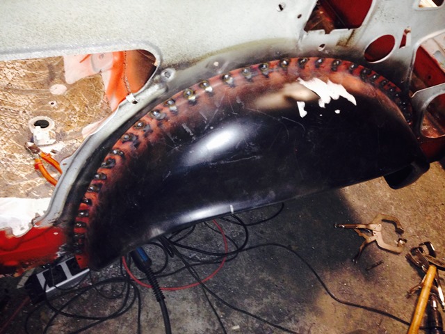 Jedoch wollte ich mich erstmal weiter um hinten kümmern und hab das Radhaus vom Schmodder und Rost befreit...so kam ich auch besser an die seitlichen Schweißpunkte für den Kofferraumboden dran...