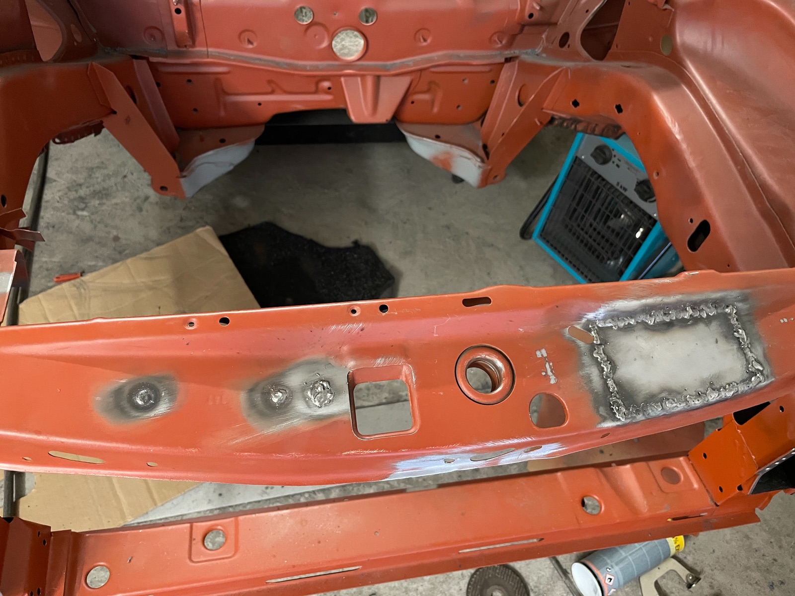 Anschließend wurde das mit der Karosserie verschweisst und die Punkte wieder geglättet. Das hat alleine auch 5Stunden gedauert. vor allem dir Schweisspunkte im Längsträger waren ätzend..man kommt kaum dran und ich hab mit ner Verlängerung und der Trennscheibe von Dremel gearbeitet..