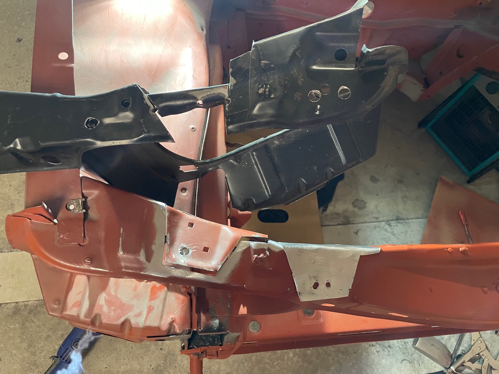 #103 Ein wenig ging es weiter. Zunächst habe ich die Verlängerungen am unteren Kühlerträger fixiert und angeschweisst. Natürlich hab ich immer wieder an der Karosserie die korrekte Position kontrolliert.