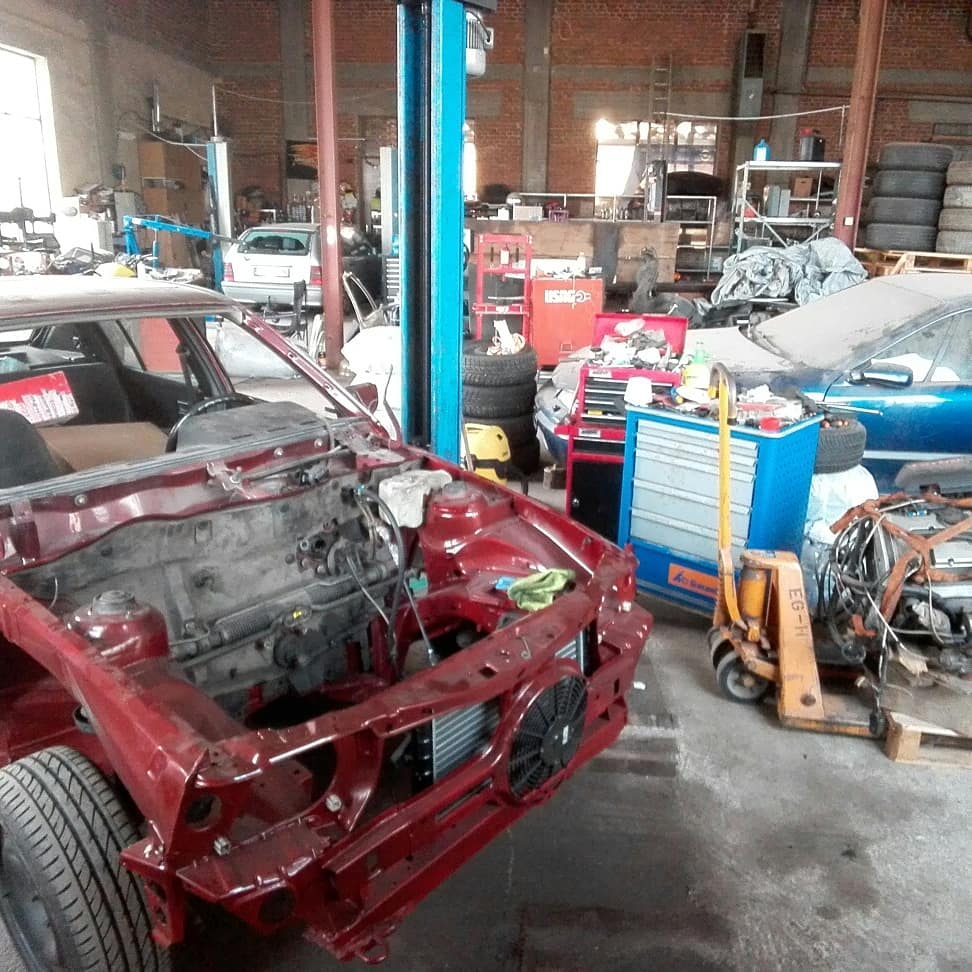 Dort wird aktuell die Spur eingestellt und AU gemacht, am Freitag geht's zum TÜV.