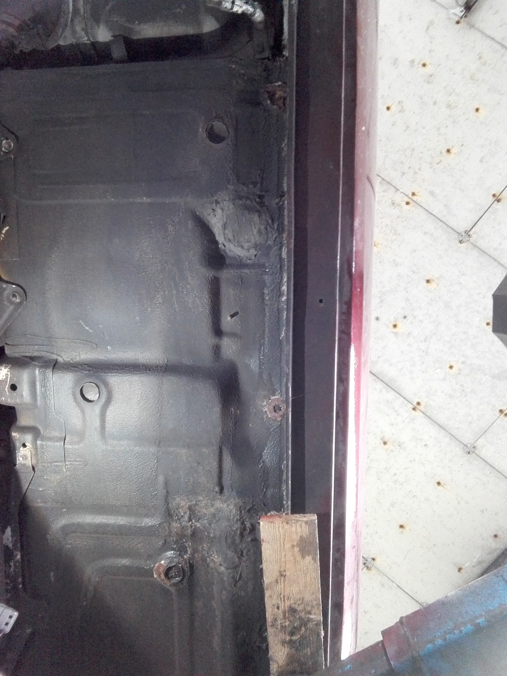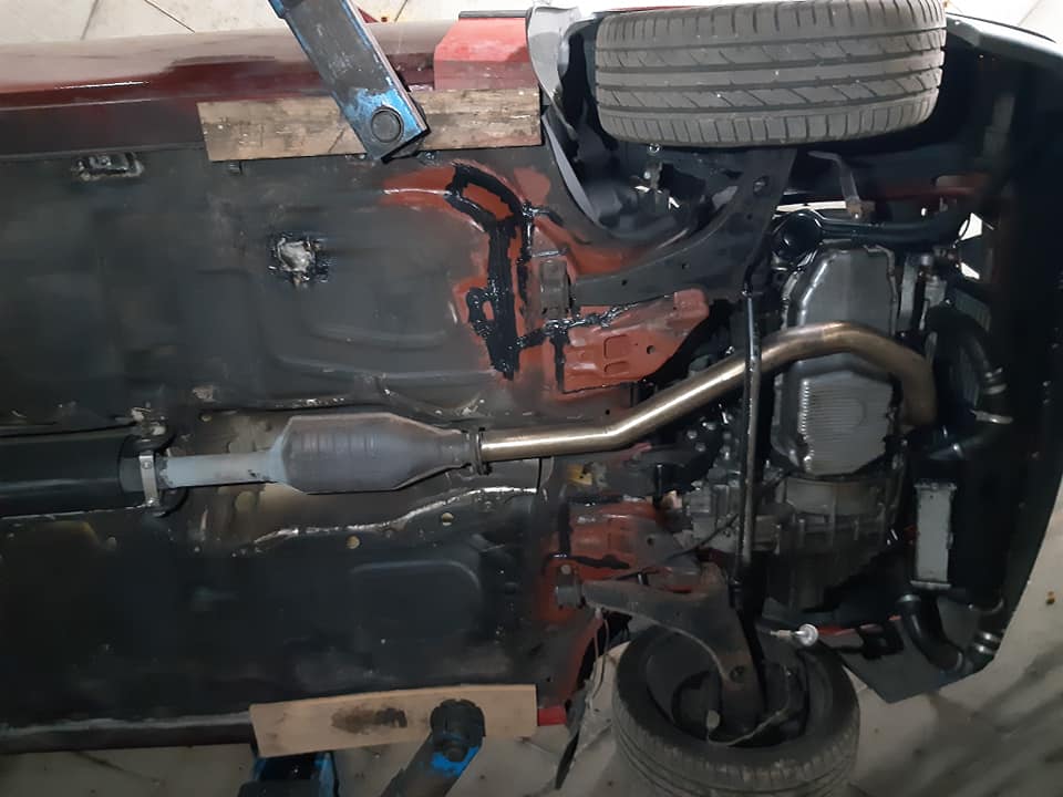 Der Beifahrerfußraum, alle Halter für die Spritleitungen und der ein oder andere Ablaufstopfen wurden wieder verschweißt. den Automatikkühler musste ich wieder rauswerfen, da der Anschluss für den Temperaturfühler seitlich saß und nicht zum Motor hin, deswegen aus Platzgründen nochmal neu. Den Innenraum wieder zusammengebaut und den Unterboden abgedichtet und mal alles Probehalber zusammengesteckt.