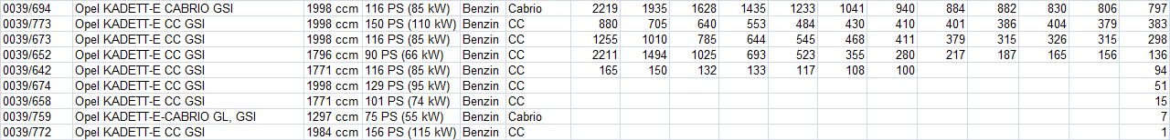 Opel KADETT-E CC 1796 ccm 84 PS (62 kW) Benzin