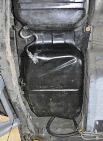 So fahrdynamisch sollte ja das Benzin in seiner Hälfte bleiben, weil ja nicht viel durch den Schlauch strömen kann, aber wenn das Auto schräg steht, läuft das langsam in die andere Hälfte. Wenns doof kommt in die Hälfte ohne Pumpe.